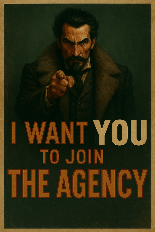 The Agency is a first-person action RPG that is canon for the Sibling Suns series. That means there will be item descriptions, dialogue, and eventually commands (missions) that will shed more light on what The Agency was up to in the early years of Ulken's reign. I've always wanted to write for a video game! I never expected it would be my own. But that's the fun of being an indie author β we get to try crazy things.