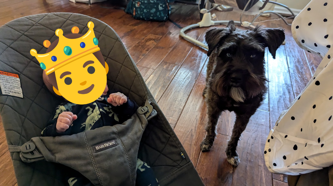 Poor Nazgul, so overshadowed is he by the new king of the castle: King Benjamin the Hungry. He definitely gets bored when he's not at daycare and all our attention is on the baby.