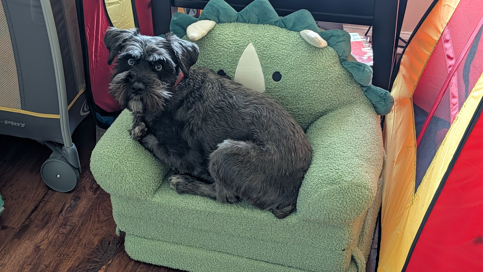 We've been feeling really bad lately because Naz has not been getting close to as much attention as he did before Benny was born. I tried to make it up to him this month, but he responded by trying to perform an asset seizure on Benny's dinosaur chair.