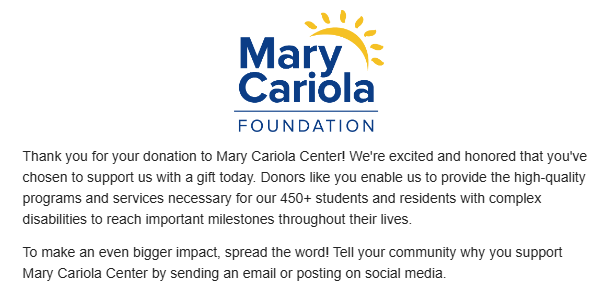 [Mary Cariola is] the regional leader in personalized, interdisciplinary, evidence-based education and life skill solutions that inspire and empower individuals and the families of those with complex disabilities. [Our vision is] to set the standard in innovations that unlock lifelong potential for people with complex disabilities.