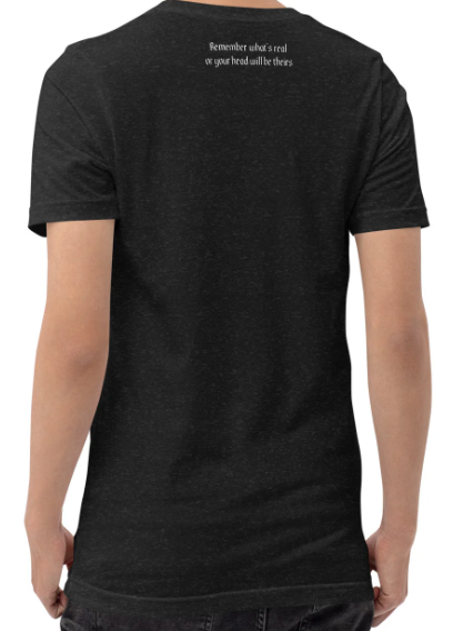 No, not the dog. We still love him (even though he tore up a whole roll of toilet paper once). The t-shirt! Here's a better look at the front and back: