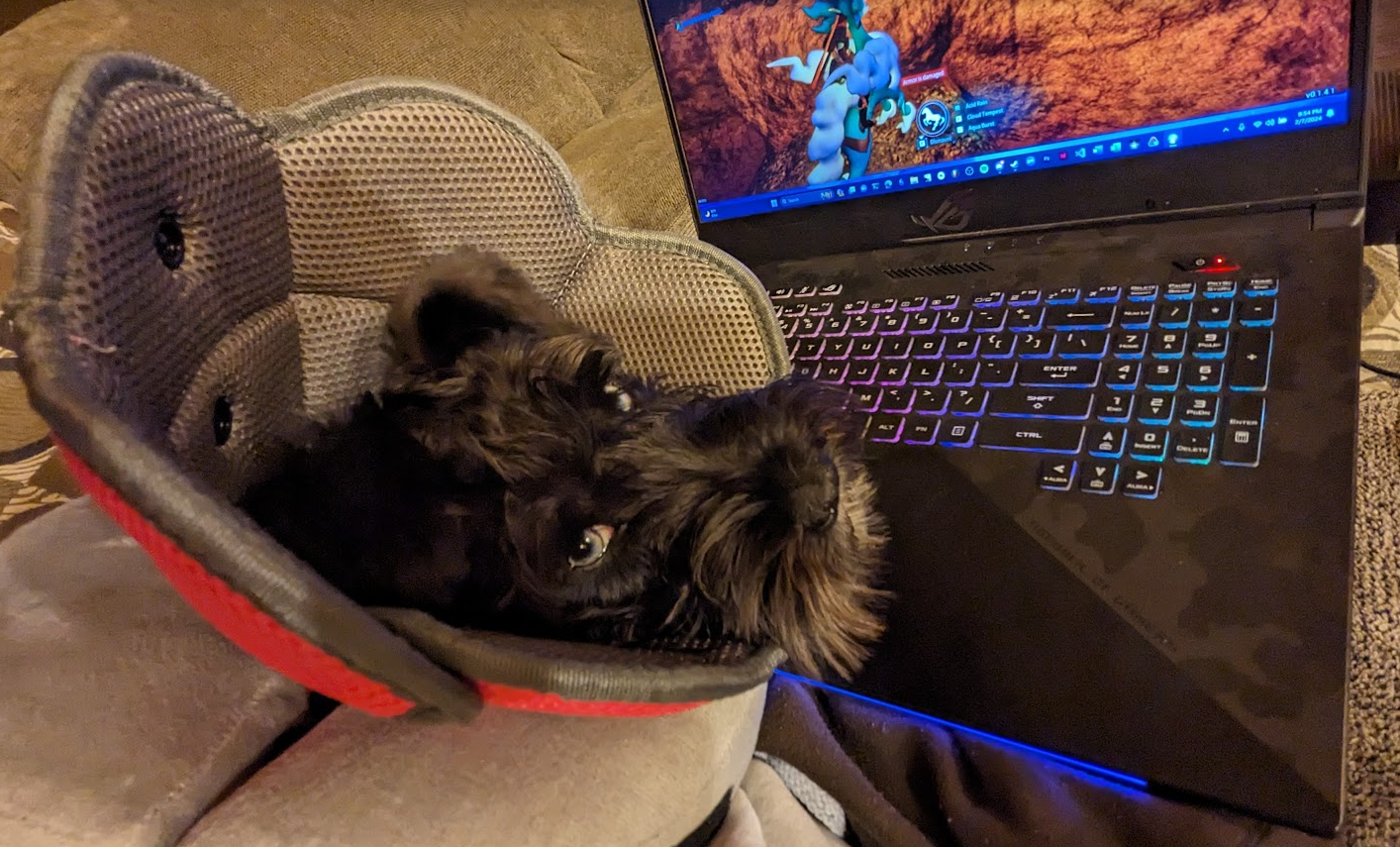 Boy, oh boy. Where do we begin this month? You've already seen Nazgul in his cone because he was neutered on the first of February. Rest assured it didn't stop him from cuddling up and getting in the way of my ahem very important business. (Yes, I was playing Palworld, don't judge me.)
