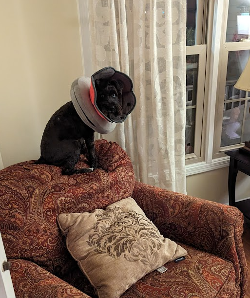 They're a great spot to recuperate, which is good because he got sick and had a fever just a week after the cone came off. We think he ate something nasty because he was ill for five worrying days. He's had a rough go of it, but just today he got a clean bill of health from the vet, and he's got an excess of energy to prove it!