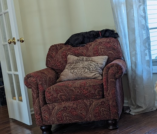 And he's become obsessed with all manner of chair- and sofa-top. They must be comfy.