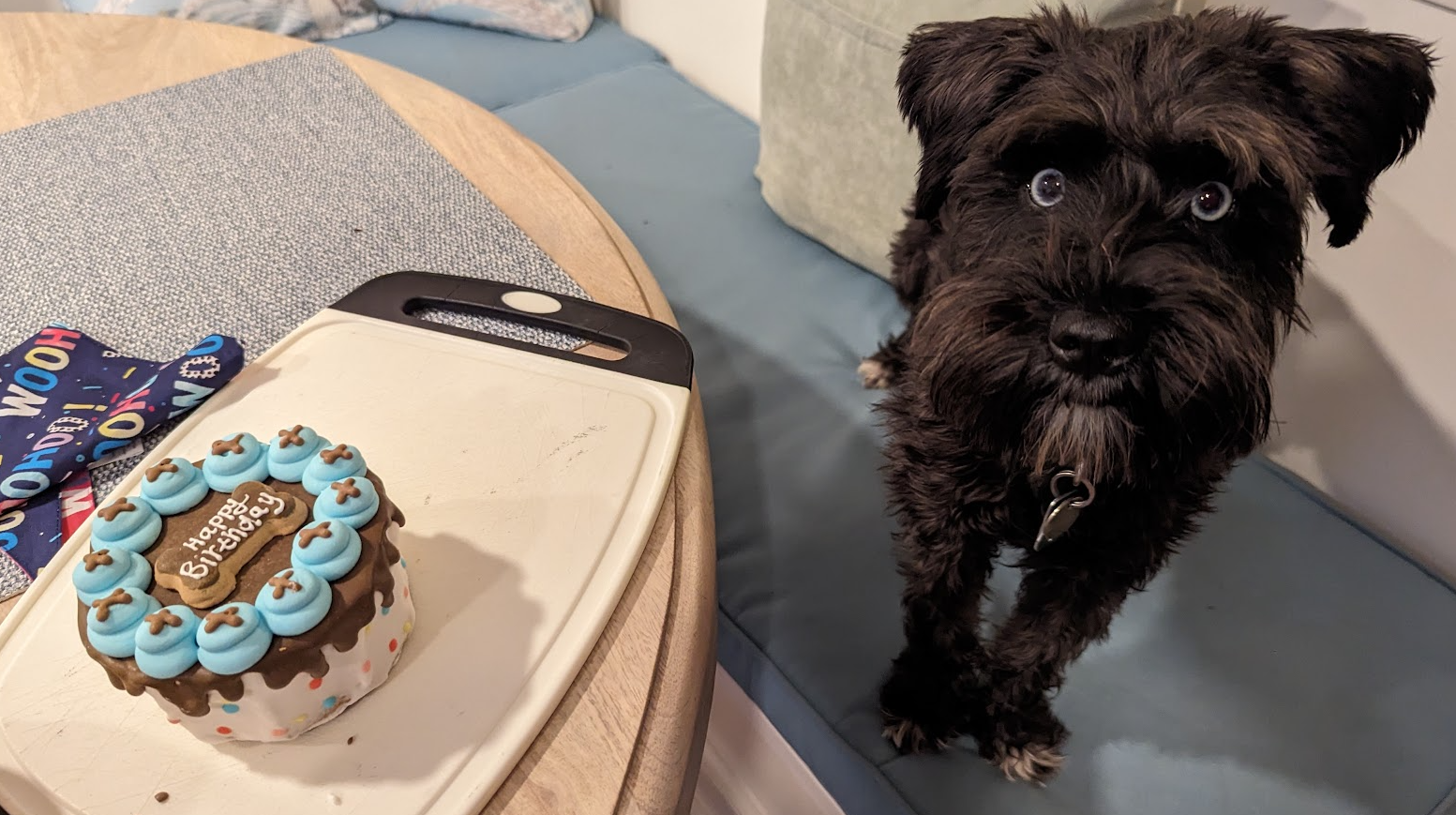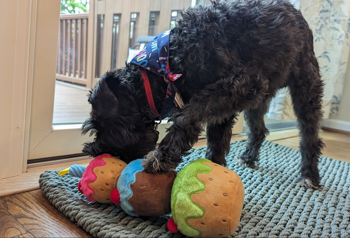 We threw him a birthday party and absolutely spoiled him (and his diet). It's what he deserves for being such a good boy, incessant barking notwithstanding.