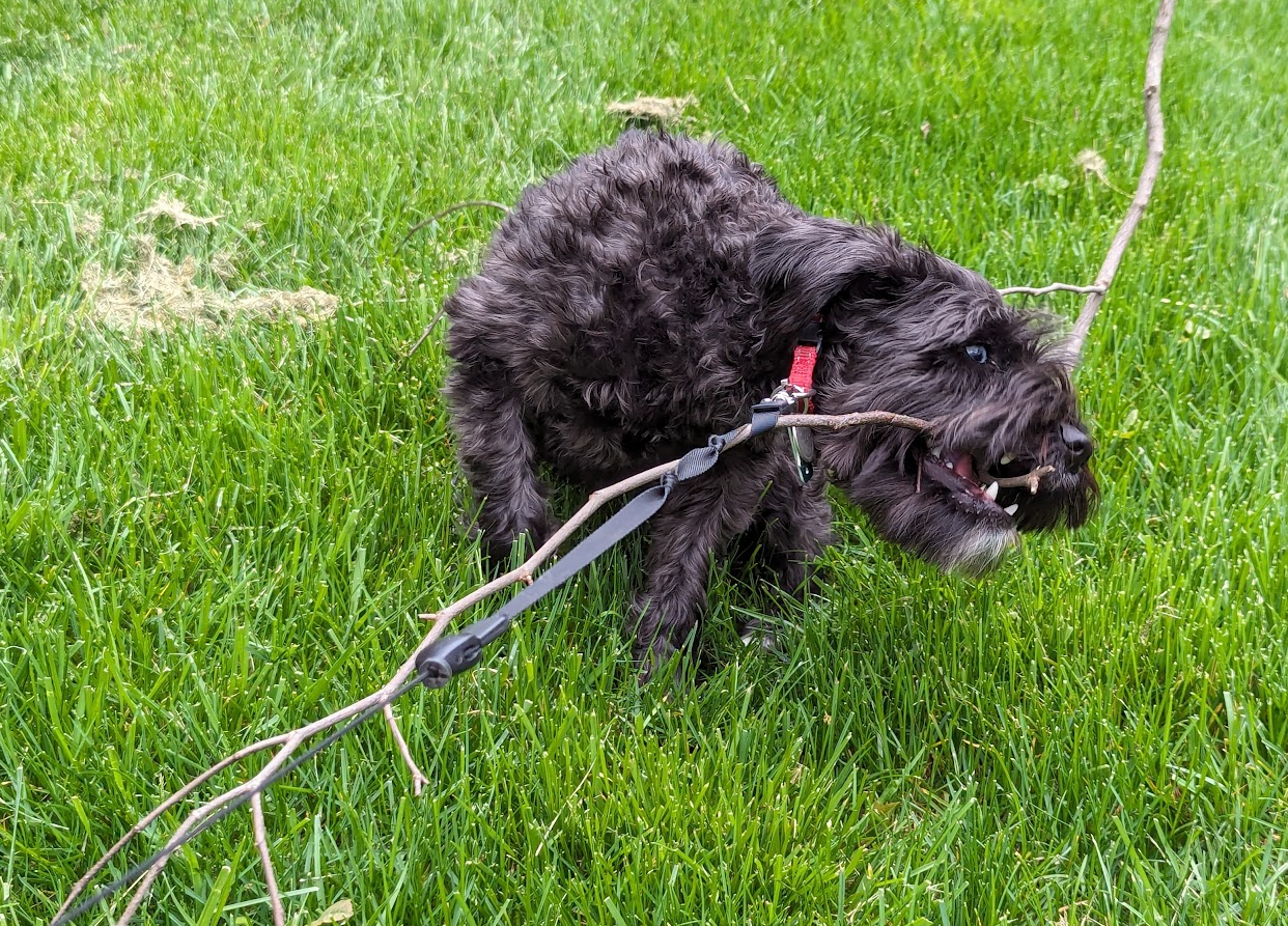 Now that he's a big doggo, he thinks he can eat entire trees. Spoiler alert: he can't.