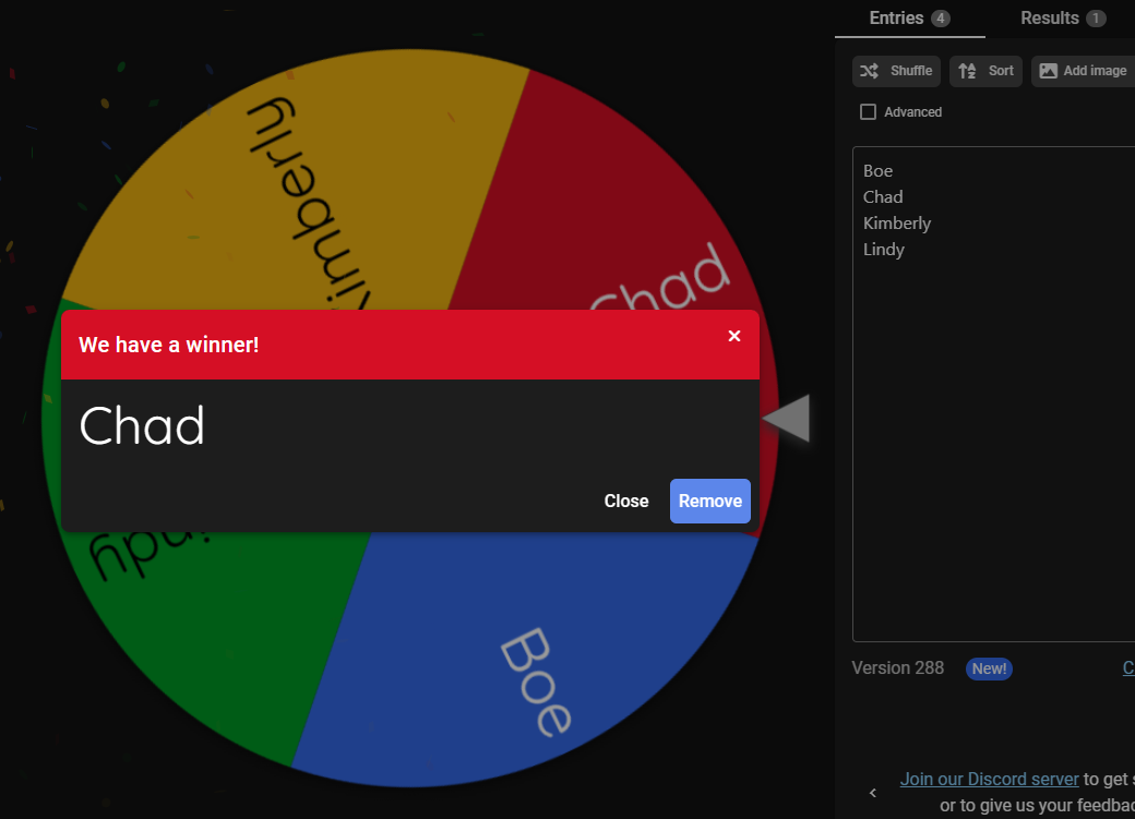 Incredibly, this man has won two giveaways in a row! Just to keep me honest, I included the number of Results (1) in the screenshot to show I'm not re-spinning to favor any one person. The Wheel cannot be questioned. The Wheel cannot be altered. Chad, you will have your Lorelay mugâin whatever size you desire!