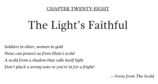 Many of those epigraphs were lyrics thanks to Lorelay, everyone's favorite blasphemous bard, taking center stage in To Burn All Belief. This time I don't have to pull an example from Mark Lawrence's X account and can show you an actual epigraph of my own!