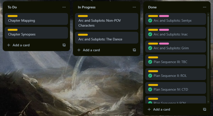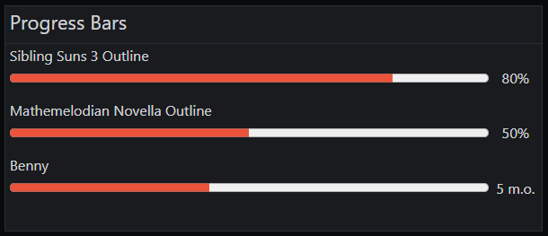Against all odds, he's done it! The progress bar now sits at 80%, meaning I've finished the outline for all three major POV characters. Let me tell you, it's enough to bring tears to my eyes. Some for joy, that this book is inching closing to fruition, and some for sorrow, because not everyone is getting a happy ending.