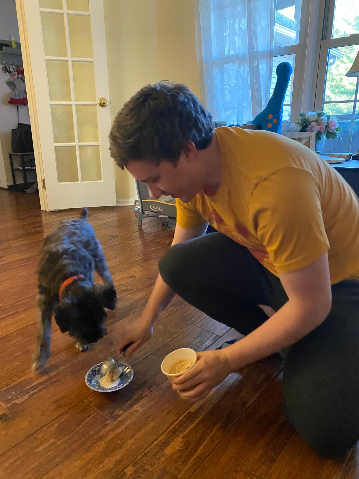 To top off the festivities, he got some peanut butter ice cream, which he gobbled up as fast as he could. Maybe we spoiled him a bit, but we love our boy. Even if he is equal parts cute and annoying.