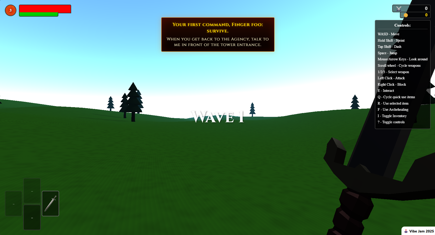 In April, I completely reworked the new player flow, so you get right into the action as soon as you enter your player name. Once you finish a survival round, your game will be saved and you'll be transported to the Agency courtyard, where Grim himself met Hand Sixty-Four.