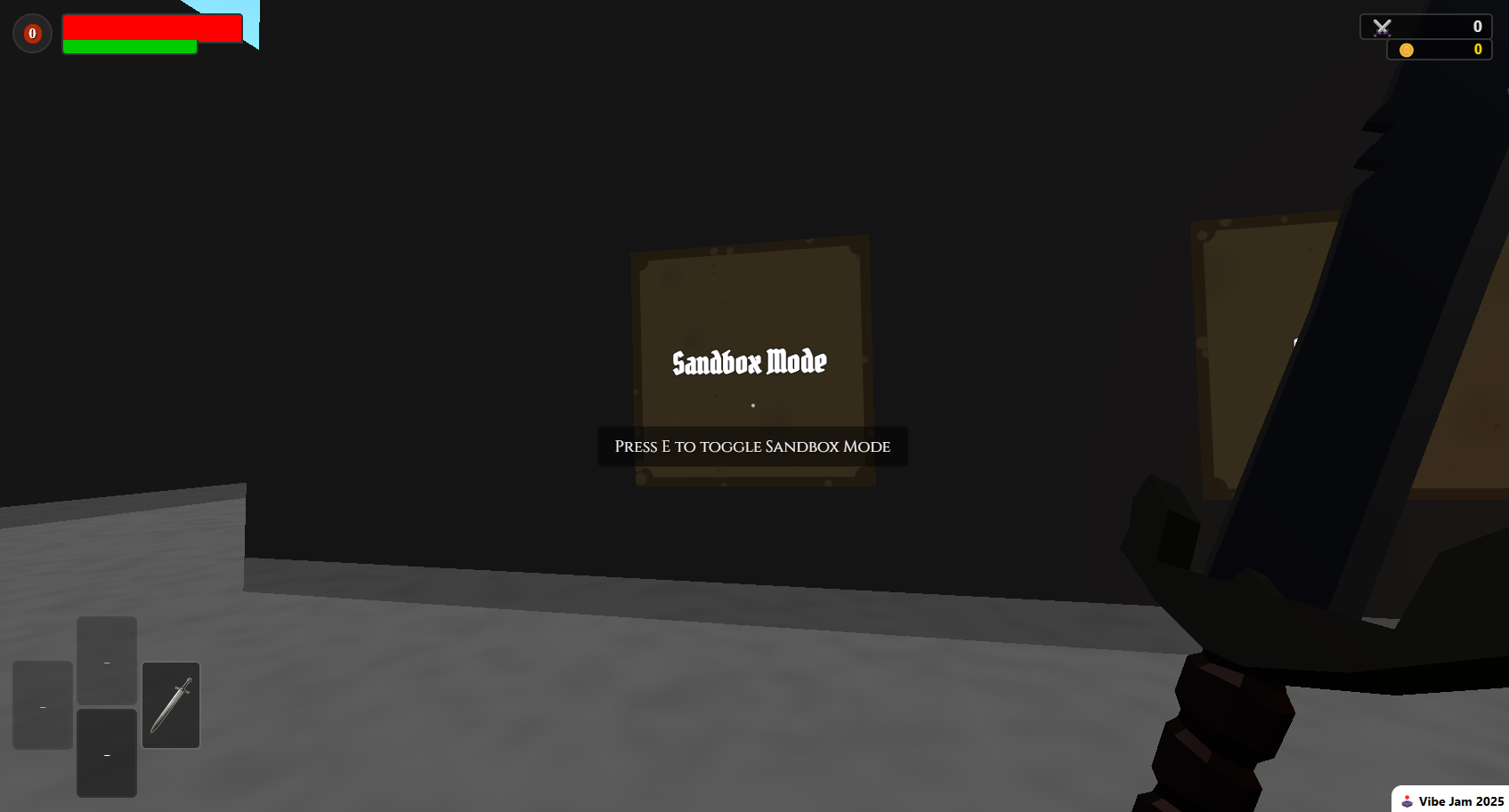 In the courtyard, you'll now be able to enter Sandbox mode, which lets you play with all of the items and level up to your heart's content. Go wild! The game is completely broken at high level - you can basically fly at super speed with enough Dexterity.