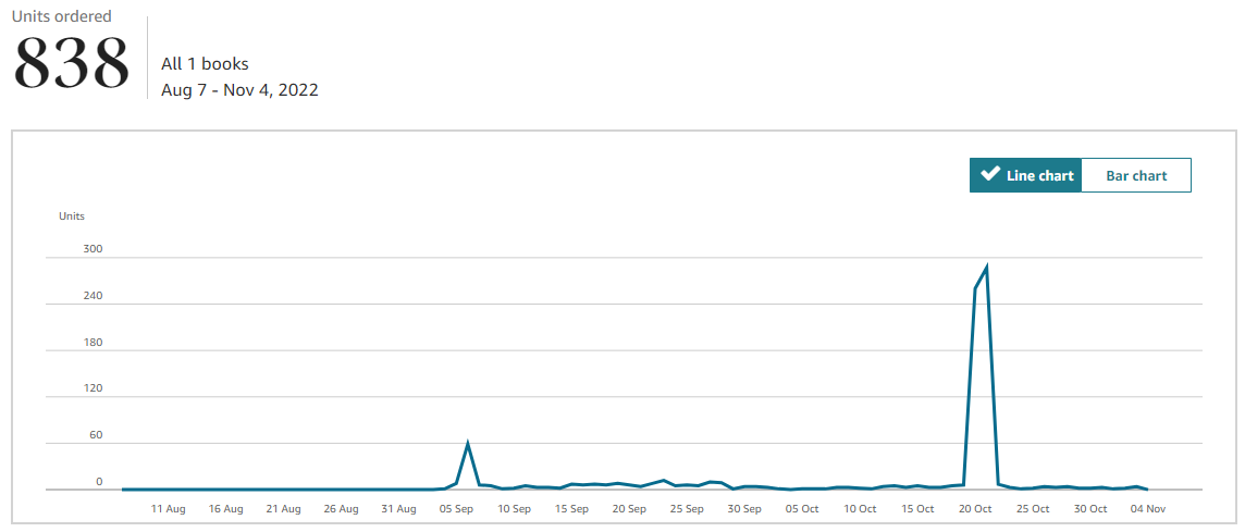 Kindle Unlimited readership has been very good as well, equivalent to about 35 people reading the book from cover to cover.