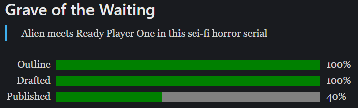 If you've been keeping up with my Twitter or YouTube channel, you'll know that the first draft of Grave of the Waiting is now complete! Here's how our progress bars stand: