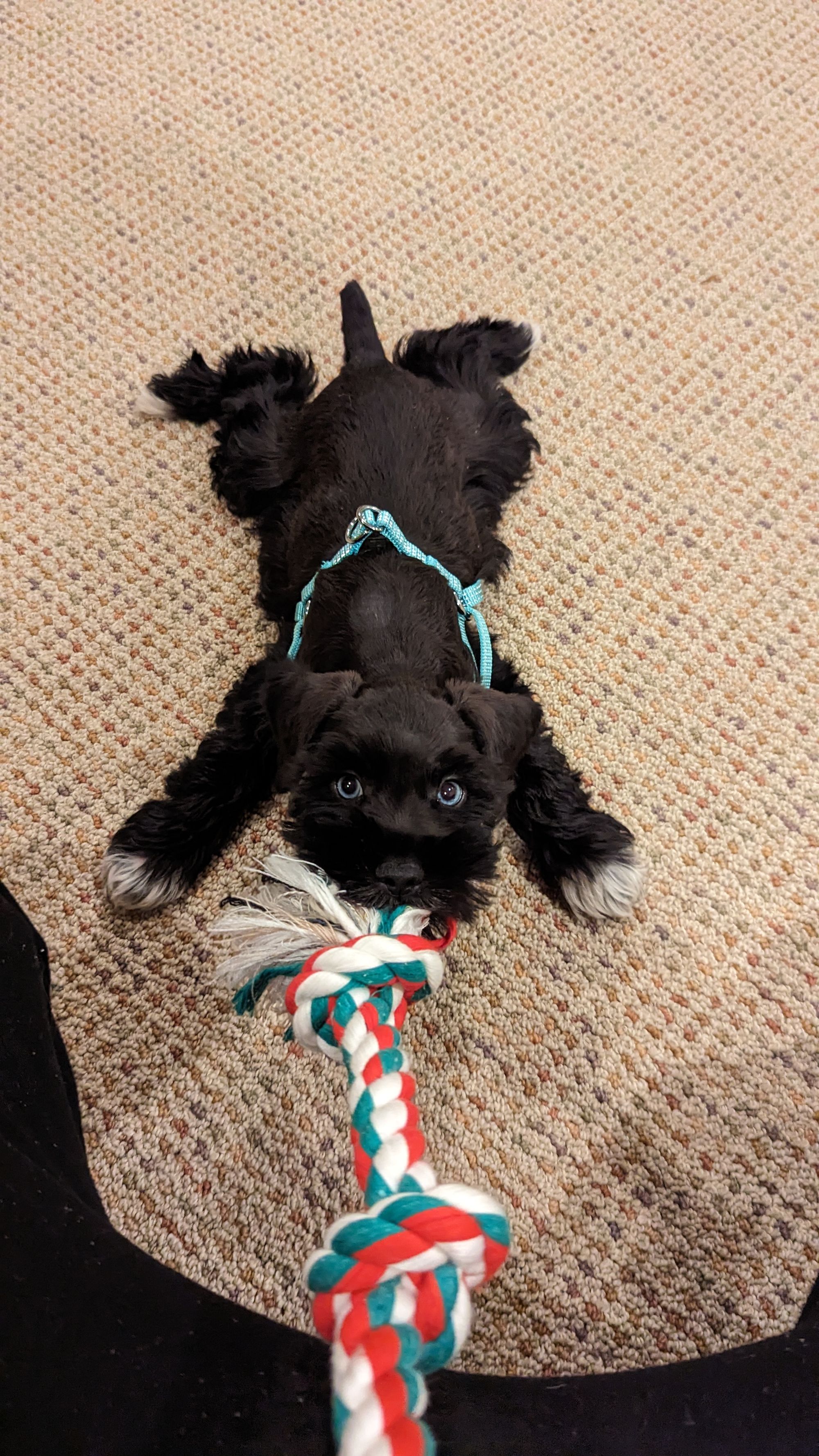 Your prescribed dose of Nazgul! This month has been a challenge, as we've had to pull him out of daycare. It was just too soon for him to start attending β he started having accidents indoors and barking at, well... literally everyone and everything. All because he picked up on pack behavior at the daycare. Now that he's home with us more often, he's a good boy again.
