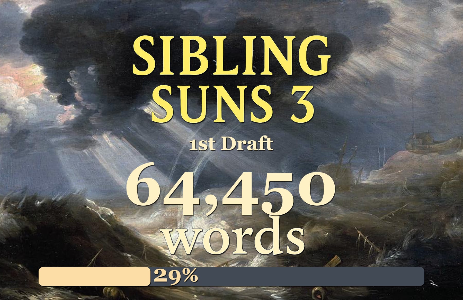 Perhaps the more surprising thing is that nearly 10,000 words only resulted in two and a half chapters. Definitely longer chapters than I've been aiming for in Sibling Suns 3, but they've been some of my better ones. Silver linings!