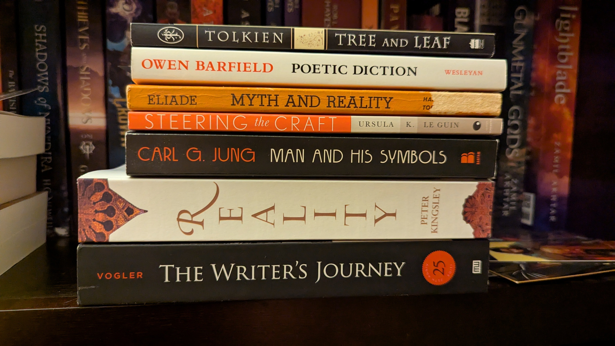 I'm trying something new here. I recently picked up a stack of books that interest me all centered around mythology, language, fantasy, psychology, archetypes, and the nature of what is real. These topics have been resonating with me recently as an author, and in reading these books, I want to do more than just read them and put them down. I want to sit with the ideas for a while after turning the last page.