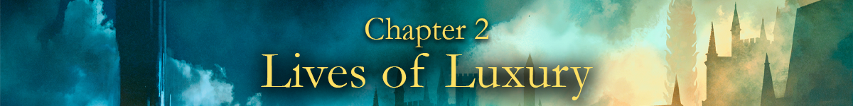 Several residents of the Blight—the name most Liwo gave this district—looked up at me in surprise. A shaggy, gray-haired man snickered at me from a mound of detritus in front of the husk of a hovel lost to the Riot’s fires. The wooden foundation that once kept it level on the hill had collapsed long ago. Against all odds, two walls remained standing—enough to make a home in these destitute parts. In the street ahead of me, a barefooted boy began to cry. His stone-faced mother held his hand in her own, cradling his baby sister in her arm.