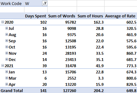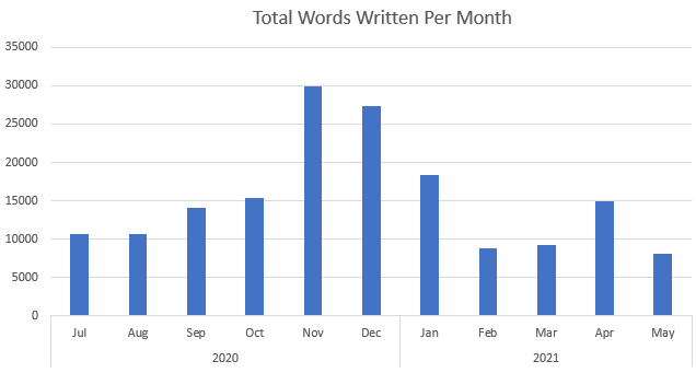 This is the first of these Goals & Projects posts, so there were no goals set on my 29th birthday. However, I have been tracking metrics on my writing since February 2020, so I should be able to create a baseline set of goals from the data.