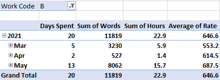In April and May 2021, I spent an average of 16.5 hours per month on the blog. That may not sound like much, but from July 2020 to January 2021 I spent an average of 26.5 hours per month writing the second draft of my book. If I kept up this rate, I'd be spending more time on the blog than on my book. I don't think that's the right priority order.